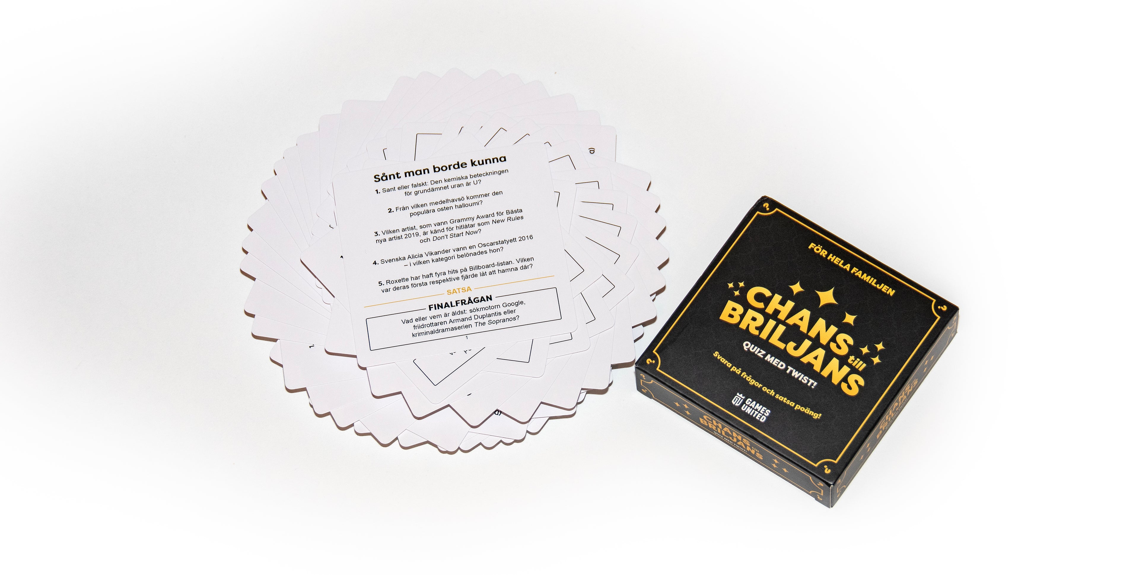 Chans till Briljans är frågespelet där kunskap, mod och tajming avgör. Ett fartfyllt spel för familj, vänner och alla som älskar att utmana sig själva. Lätt att lära, roligt att bemästra och perfekt för sociala samanhang.